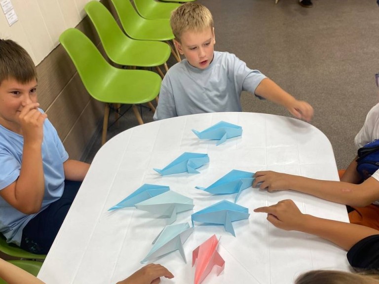 Сегодня с детьми из лагеря «Звёздочки» мы говорили о животном мире Арктики. Среди морских обитателей арктических вод особое место занимают киты - самые большие животные нашей планеты. Ребята узнали, что в разное время года в водах Арктики можно встретить синих, горбатых, японских китов, а также финвалов, нарвалов и кашалотов, но только гренландский и серый киты из всех сородичей проводят в холодных водах всю свою жизнь. Познавательная викторина «Всё о китах» вызвала большой интерес и шумные обсуждения участников. А с помощью техники оригами мы сделали фигурки кита и полярной лисы.
