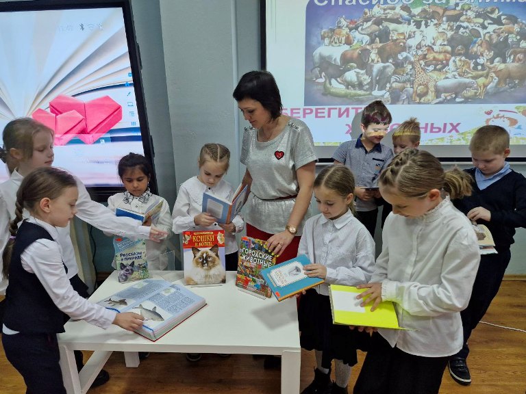 Ребята с увлечением рассматривали яркие книги о животных Михаила Пришвина, Евгения Чарушина, Константина Ушинского, Бориса Житкова и других известных авторов.