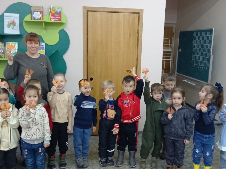 В течение мероприятия дети узнали об истории праздника, познакомились с книгами по данной теме, а затем отправились в волшебную страну творчества и мастерства. Каждый ребенок сделал себе бумажную игрушку «Лисенок» в технике оригами.