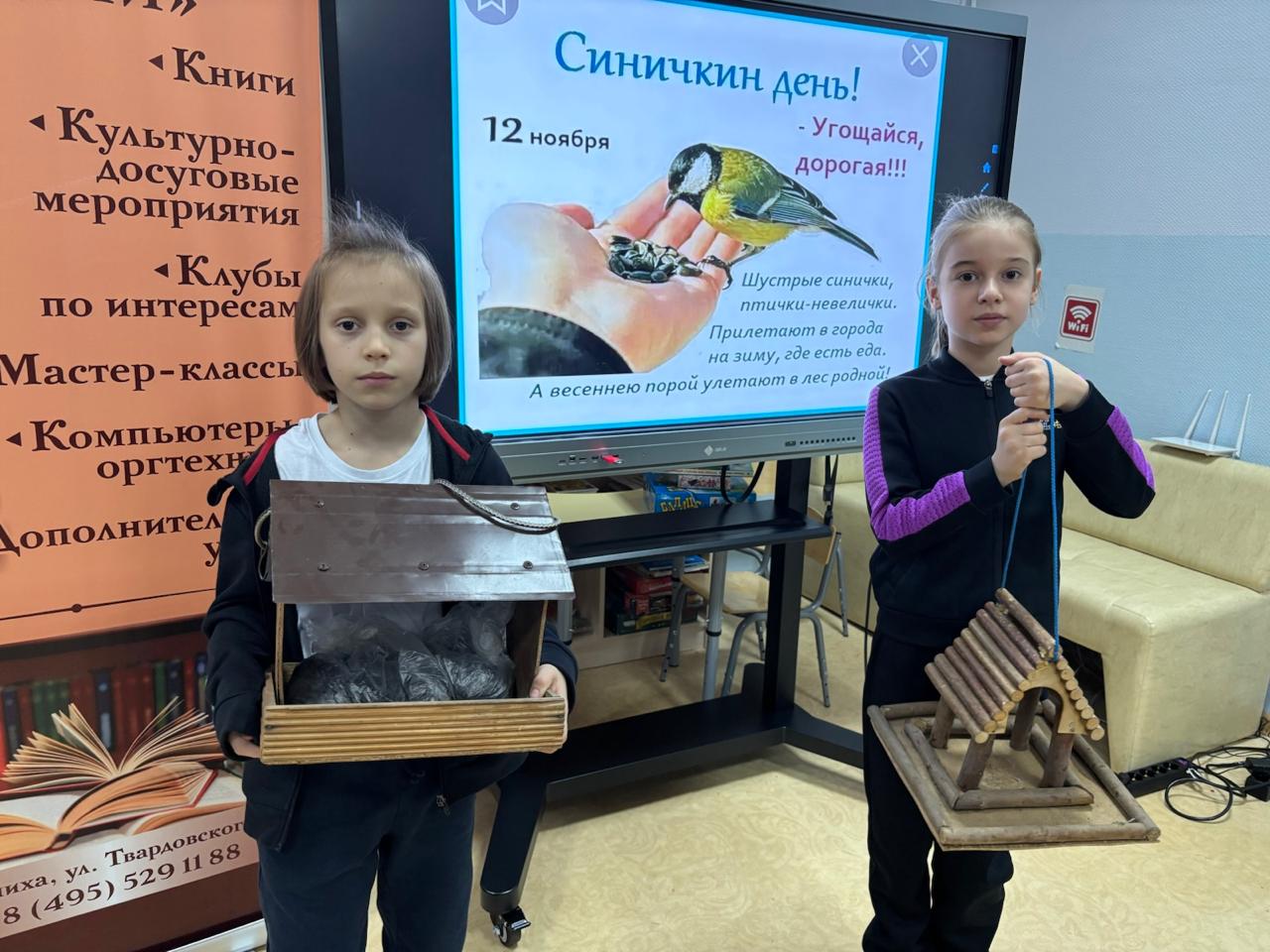 14 ноября в библиотечном центре «Южный» для членов детского клуба «Живая планета» была организована познавательно-игровая программа «Синичкин день», включившая в себя громкое чтение отрывка из рассказа «Синичкин календарь» и повести «Лесная газета» В. Бианки; знакомство с жизнью синиц и их разновидностями с помощью электронного видеоряда; викторину «Птицы зимой».