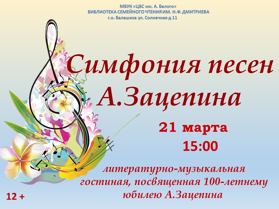 "Симфония песен А.Зацепина" литературно-музыкальная гостиная