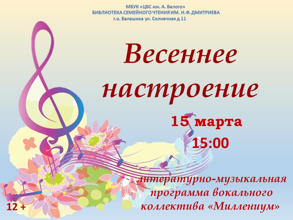 Весеннее настроение. Музыкальная программа вокального коллектива «Миллениум»