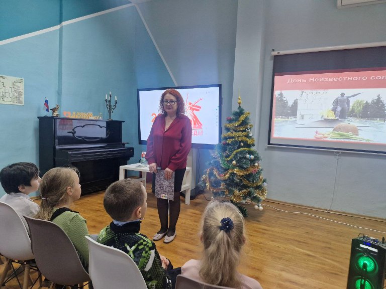 Ученики второго и третьего классов МАОУ «Школа №2», посетив Юношескую библиотеку 3 декабря, узнали об истории возникновения Дня Неизвестного Солдата, о том, почему и когда он был учреждён. Школьники увидели документальные кадры военных лет, услышали фрагменты писем с фронта, вспомнили героев своих семей, делились своими мыслями о важности памяти и уважения к тем, кто отдал свою жизнь за Отечество.