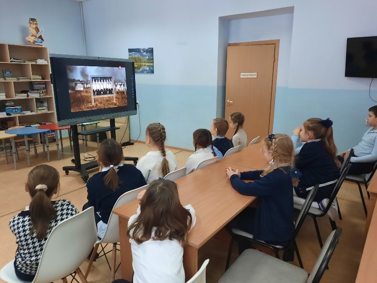 Детям рассказали о мальчишках и девчонках, которые за подвиги, совершённые в годы Великой Отечественной войны, были удостоены самой высокой награды Родины - звания Героя Советского Союза. Школьники с интересом слушали рассказ о своих ровесниках: Лёне Голикове, Зине Портновой, Марате Казее, Вале Котике и других пионерах-героях, чей подвиг навеки останется в памяти поколений.