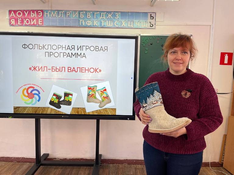 Учащиеся познакомились с ненецкой сказкой «Кукушка», приняли участие в играх «Найди пару», «Заштопай валенок», «Сказочные валенки». Ребята с интересом слушали историю появления первой обуви, сваленной из шерсти, узнали о целебных свойствах и процессе изготовления валенок, побывали на виртуальной экскурсии в музее валенок в городе Мышкине.