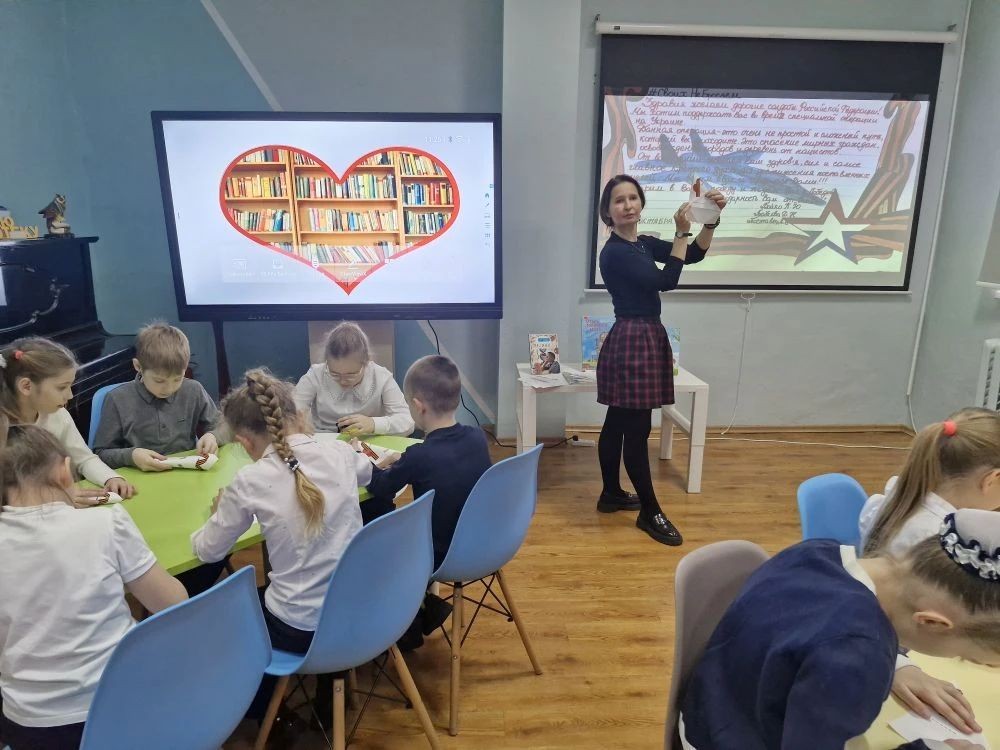 Сотрудники СМАРТ Студии рассказали школьникам историю возникновения солдатского треугольника и научили их правильно складывать, а дальше уже каждый проявил свою сердечность и фантазию – кроме искренне написанных тёплых слов, дети нарисовали свои пожелания бойцам – солнце, синее небо, яркие цветы и золотые медали!