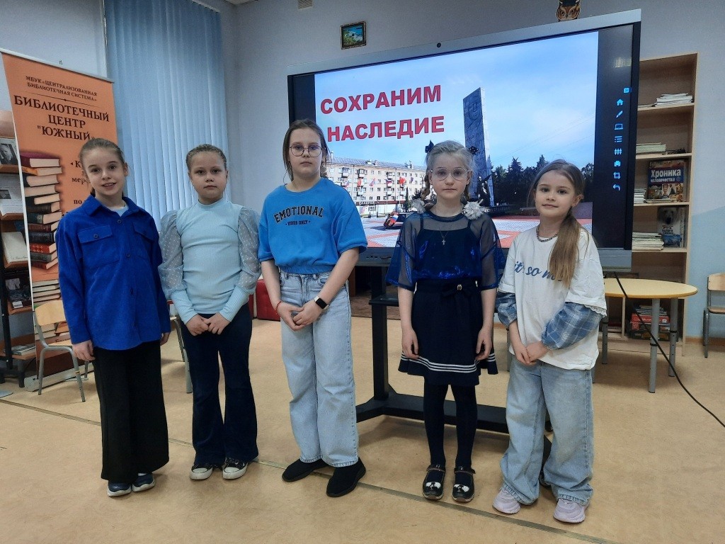 17 апреля в Международный день памятников и исторических мест библиотечный центр «Южный» провел для школьников информ-досье «Сохраним наследие». Юным слушателям рассказали о том, как нужно относится к историческим местам, что такое памятник, кому и за что может быть установлен. Отдельный разговор коснулся легендарного памятного монумента на площади Славы в центре Балашихи, автором которого стал скульптор, почётный гражданин нашего города Н.С. Любимов.
