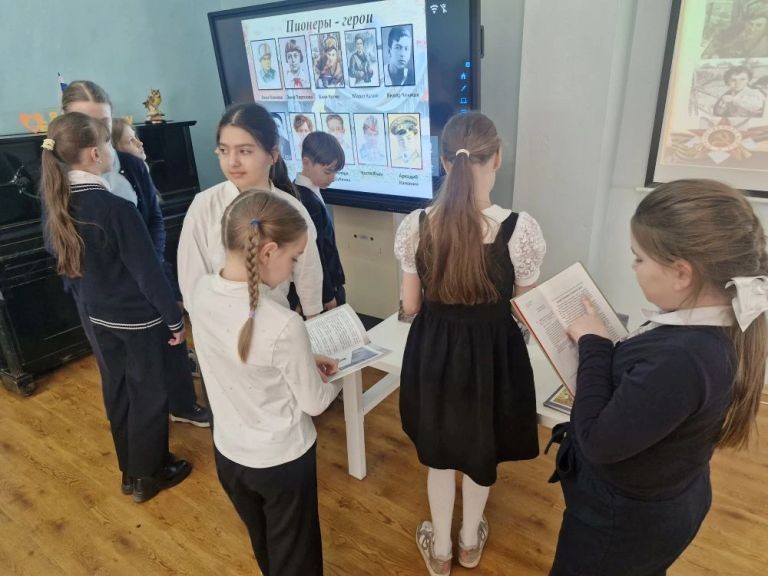 Школьники увидели документальные кадры времён Великой Отечественной войны, услышали стихотворение Мусы Джалиля «Варварство» в трогательном исполнении своей одноклассницы, узнали о подвигах пионеров-героев.