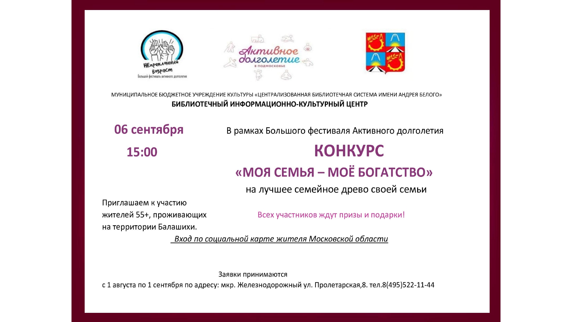 Семья — это наша опора, история и бесценное наследие. В рамках Большого фестиваля активного долголетия «НЕпреклонный возраст» мы приглашаем вас принять участие в конкурсе «Моя семья — моё богатство», посвящённом созданию генеалогического древа вашей семьи.
